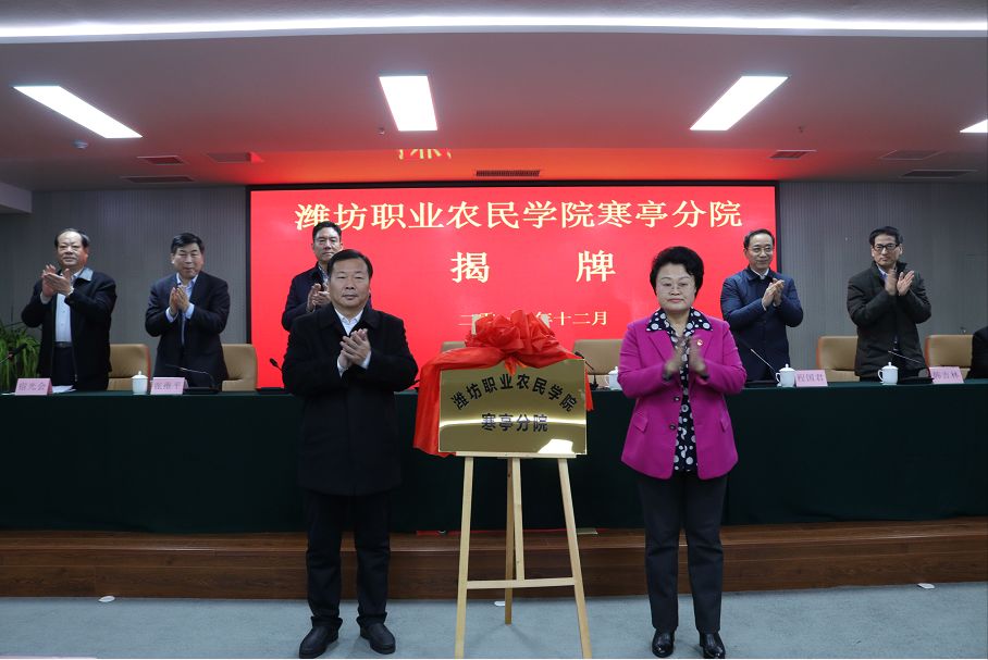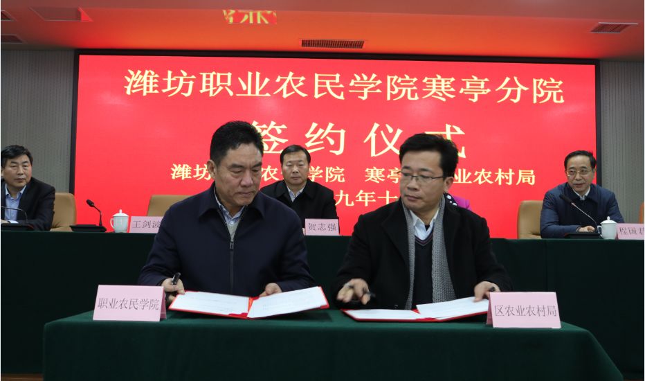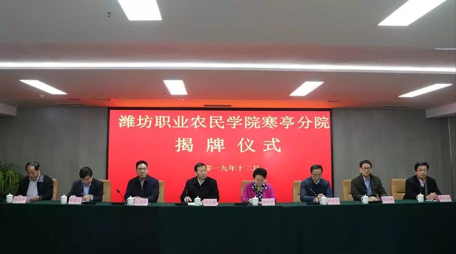为深化我区与潍坊职业学院科技合作,加快推进乡村振兴,助力寒亭农业发展,于2019年12月29日在潍坊慧三浓职业培训学校总部举行潍坊职业农民学院寒亭分院揭牌签约仪式。