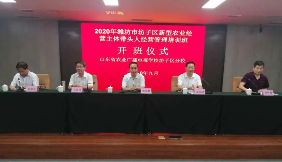 昨天,潍坊市坊子区2020年新型农业经营主体带头人经营管理培训班在潍坊国家农综区举行开班仪式。潍坊市农广校校长程国君、坊子区农业农村局局长王兆劼、副局长马贤涛及潍坊慧三浓职业培训学校负责人出席了开班仪式。