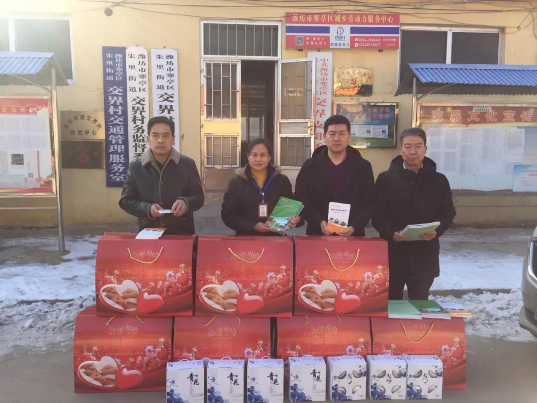 2020年1月15日上午,寒亭区科技局、潍坊慧三浓职业培训学校、寒亭科技扶贫服务队联合举办的“迎新春、送温暖”活动,走进了省定贫困村寒亭区朱里街道交界村,对孤寡老人、低保户、贫困家庭等进行了慰问,了解村内实际情况,并给他们带去了蚕丝被、科技书籍、青花瓷餐具等生活物资以及新春祝福。