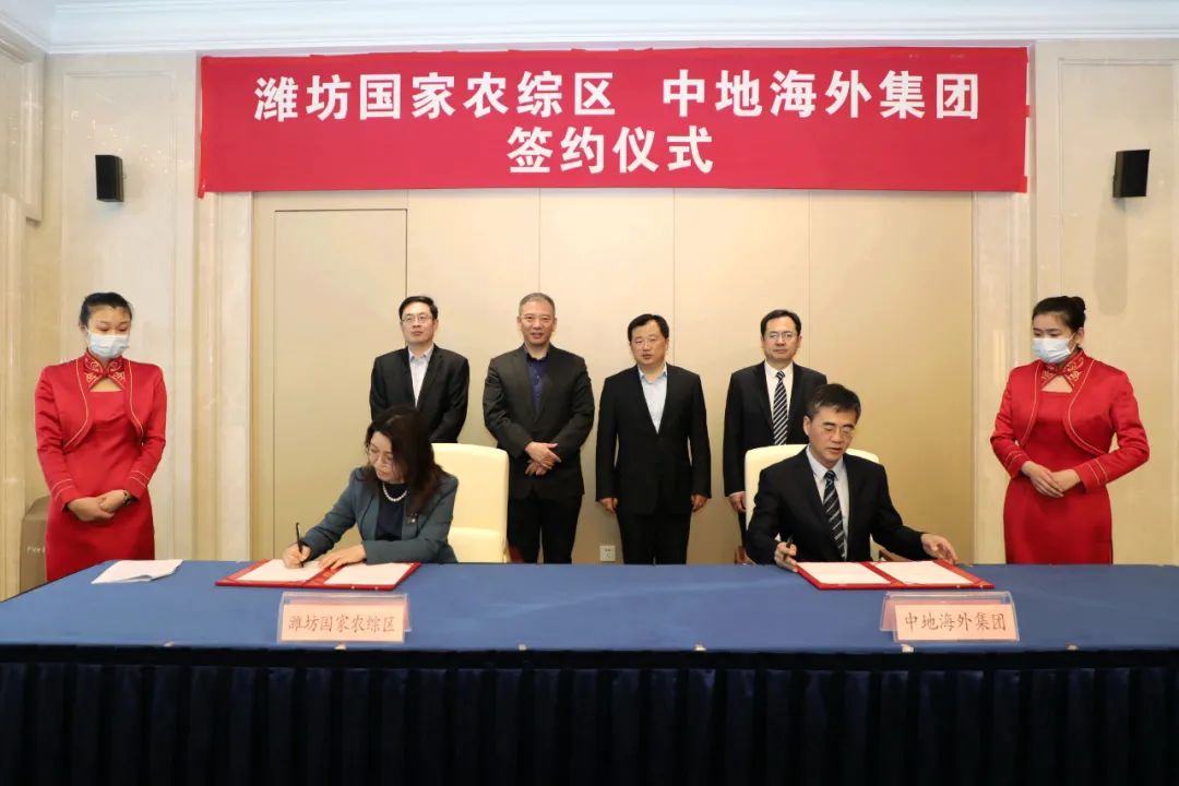 5月12日至14日,中地海外集团总裁纪为民一行8人,到潍坊国家农综区洽谈有关合作事宜。5月13日下午,市委副书记、市长刘运在富华大酒店会见了纪为民一行,双方就积极对接“一带一路”建设、推动潍坊农业“走出去”进行了深入交流。寒亭区委书记、潍坊经济开发区(农综区核心区)党工委书记滕双兴;潍坊国家农综区推进办常务副主任,潍坊经济开发区(农综区核心区)党工委副书记、管委会主任乔日升等参加。刘运对纪为民一行的到来表示欢迎。在简要介绍潍坊经济社会发展情况后,他说,潍坊是我国农耕文明的重要发祥地之一,是全国农业产业化的发源地,是闻名全国的米袋子、菜篮子、肉案子、果园子、种子库。2018年,习近平总书记两次肯定农业农村改革发展的“诸城模式”“潍坊模式”“寿光模式”。潍坊国家农综区是全国唯一的农业开放发展综合试验区,也是创新提升“三个模式”、打造乡村振兴齐鲁样板的示范区。希望双方进一步深化合作,充分发挥中地海外集团在境外投资方面的资源和优势,与潍坊农业优势相结合,在建设境外农业产业示范项目、种子种苗研发推广等方面开展务实合作,积极探索潍坊与“一带一路”国家现代农业合作新模式。纪为民介绍了中地海外集团在非洲开展业务情况,表示将充分发挥集团渠道资源,创新合作模式,搭建合作平台,合力开拓海外市场,为潍坊高质量发展作出应有贡献。5月14日上午,潍坊国家农综区、中地海外集团双方举行了签约仪式。仪式上,潍坊国家农综区分别与中地海外集团、中非绿色农业发展研究中心签订战略合作协议2021年推进计划、关于课题研究领域合作协议;潍坊农创集团与中地海外农业发展有限公司签订塞内加尔花生产业园综合开发项目合作框架协议、阿布贾农业高科技产业园合作协议。 随后到潍坊国家农综区人才学院(潍坊慧三浓职业培训学校)进行了调研。