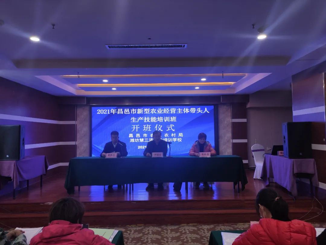 昨天、2021年昌邑市新型农业经营主体带头人生产技能第一期培训班在昌邑市农业农村局和潍坊慧三浓职业培训学校的精心组织下,在昌邑翰林酒店顺利开班。昌邑市农业农村局李冠仓局长,昌邑市农业农村局科教科夏胜芝科长出席开班仪式。