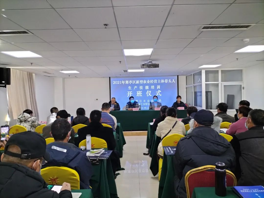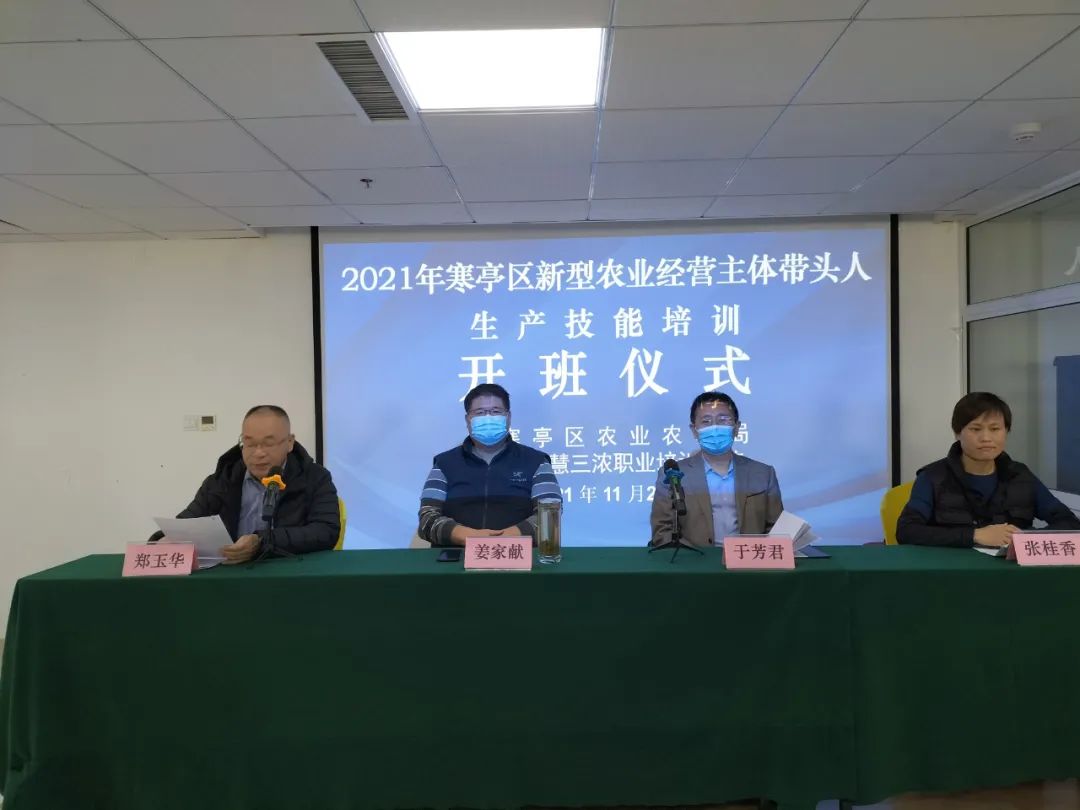 2021年11月23日-29日寒亭区新型农业经营主体带头人生产技能培训拉开序幕。23日山东省农业广播电视学校副校长姜家献、寒亭区农业农村局一级科员主任于芳君、寒亭区农广校校长郑玉华、潍坊慧三浓职业培训学校负责人参与开班仪式,学员来自于寒亭区朱里街道、固堤街道、开元街道、双杨街道、北城街道、张氏街道等9个街道共计148人分两期进行参加本次培训。