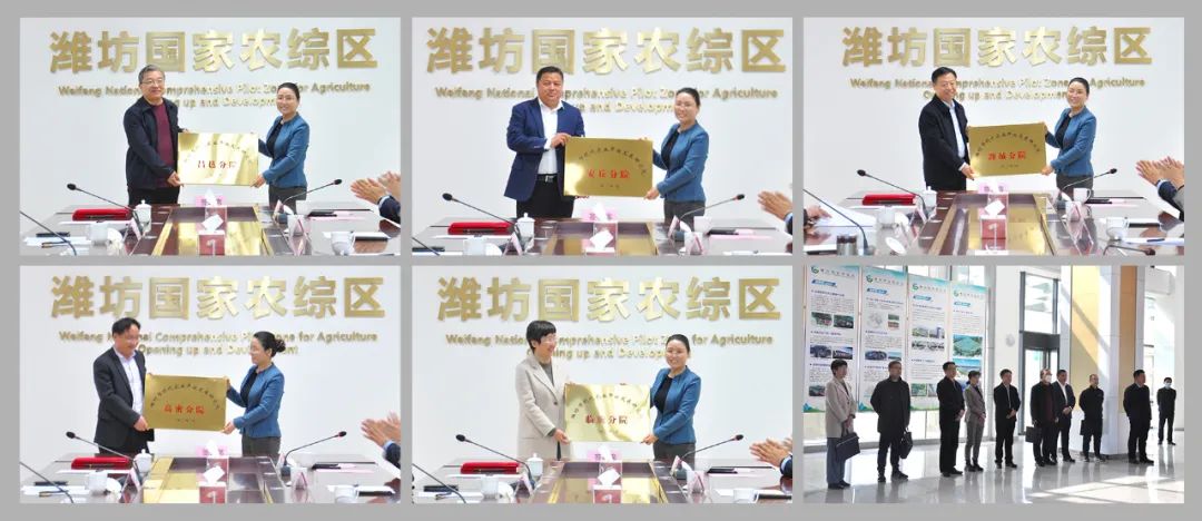 李秀明副主任为研究院昌邑分院、安丘分院、临朐分院、高密分院、潍城分院集体授牌。仪式结束后,与会领导到潍坊市现代农业开放发展研究院参观。
