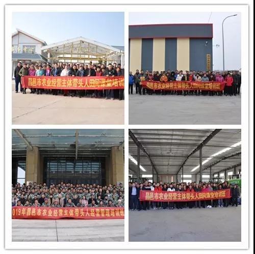 培训过程中还安排了田间课堂实地参观学习,实训基地有昌邑市孟德园果蔬种植专业合作社、潍坊博陆文化旅游有限公司、潍水田园综合体、潍坊丰瑞农业科技发展有限公司、昌邑雨泽农林种植专业合作社、潍坊丸和食品有限公司共6大参观实训基地。