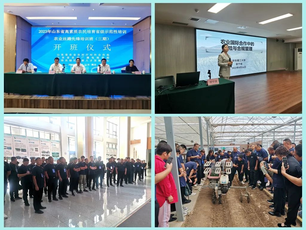2023年9月13日至9月26日,2023年山东省“农业丝路先锋”培训班在潍坊国家农综区人才学院举办,省农业农村厅对外合作处处长明文安,山东省农业交流合作中心副主任葛方存,潍坊市农业农村局一级调研员袁增寿,潍坊国家农综区推进办党组成员万庆伟,省农广校、农综区人才学院等领导和单位负责人分别出席活动。