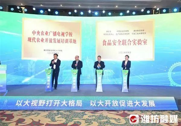 2024年4月19日上午,中央农广校现代农业开放发展培训基地在潍坊国家农综区人才学院成立,中央农业广播电视学校副校长李仕宝、山东省农业农村厅一级巡视员于永德共同为中央农广校现代农业开放发展培训基地揭牌。