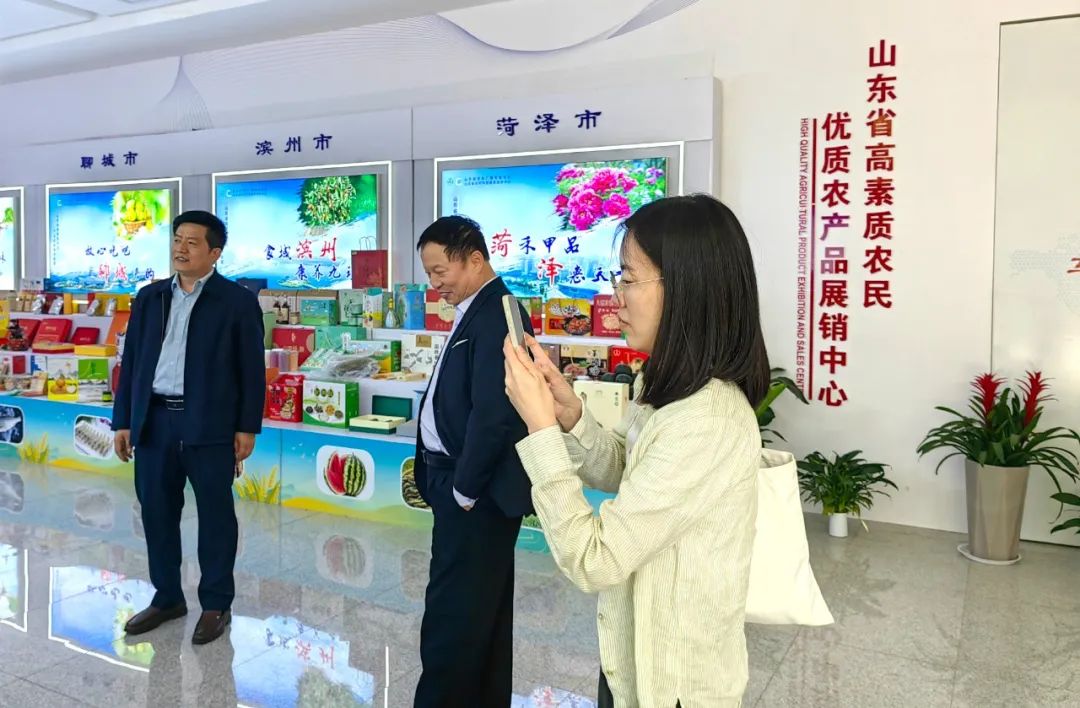 调研组到山东省高素质农民优质农产品展销中心参观,中心是依托山东省高素质农民产业发展服务联盟,由省农业广播电视学校、潍坊国家农综区推进办、潍坊市农业农村局、三农创新发展集团4家单位,在发挥各自优势的基础上,共同打造1处集山东省高素质农民培育成果展示、优质农产品对外展示和销售为一体的综合性展区。调研组对展示中心表示充分的肯定,中心的建立是为进一步拓宽山东农业对外开放宣传路径,促进农民教育培训工作新质生产力发展,提高山东省优质农产品社会知名度和影响力,助力全省农业产业的转型升级和健康发展,值得借鉴和推广。